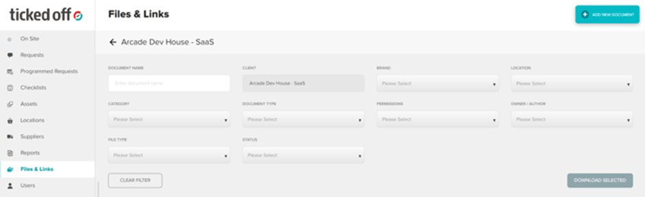 From the Files & Links landing page, use the filters to narrow down the results displayed