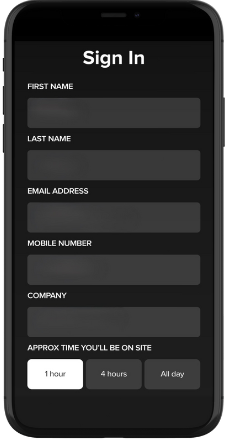 Enter your details (hint: your phone will generally have a function to prefill these). You will be able to select your expected length of time on site (you can always change this later) and then click "Sign In".
