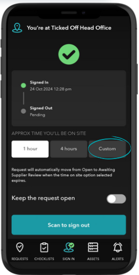 If you have the mobile app, you will receive a notification 15 minutes prior to this time expiring, with the option to extend. If you do nothing, you will automatically be signed out at the end of your Approx Time period.