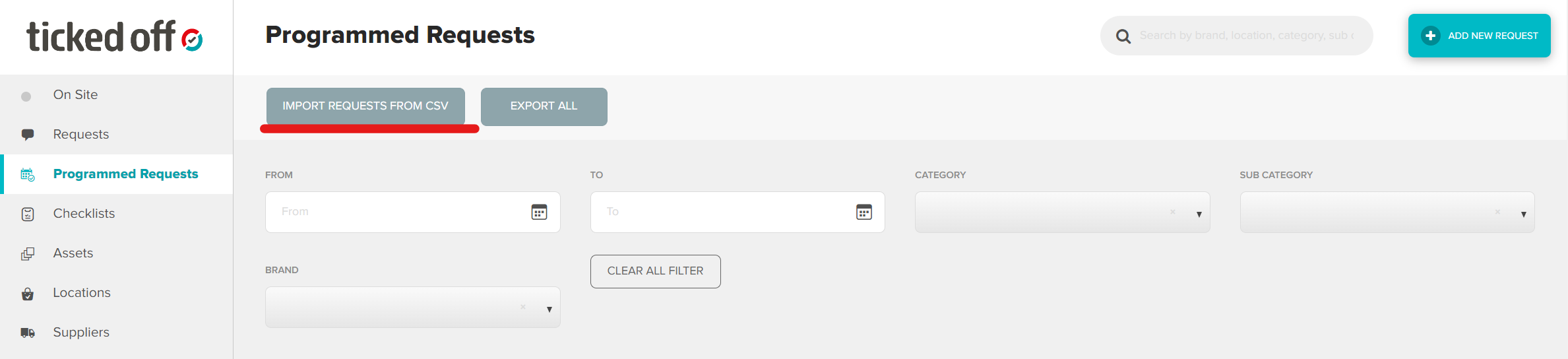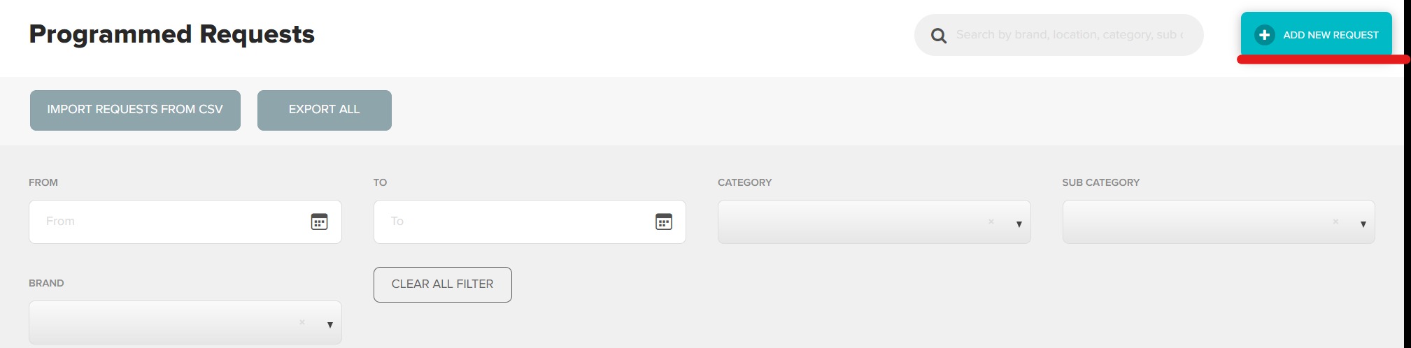 From the main programmed requests page, click on Import Requests from CSV.