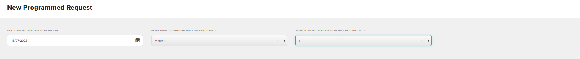 Using the date picker, select the date you would like this requests to first generate. Now select the frequency you would like this to recur.