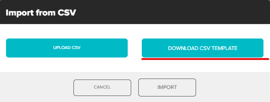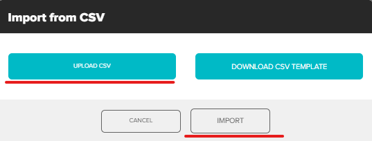 Back in the platform click Upload CSV, select the CSV just created and click Import.