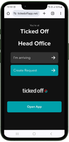 Scan QR and follow the link displayed. Tap "I'm arriving"