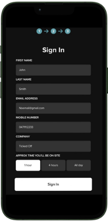 Fill in the form with your details. Tap "Sign In" to confirm