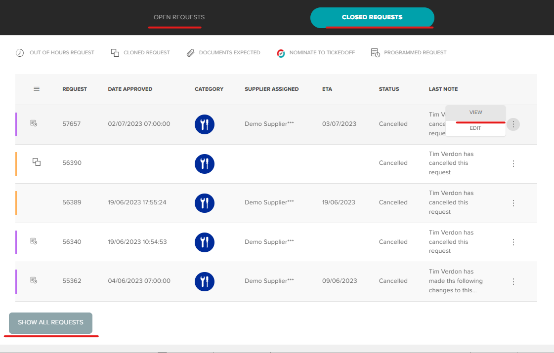 As a Super Admin user you have the ability to action Work Requests for any Brand / Location. Actions include