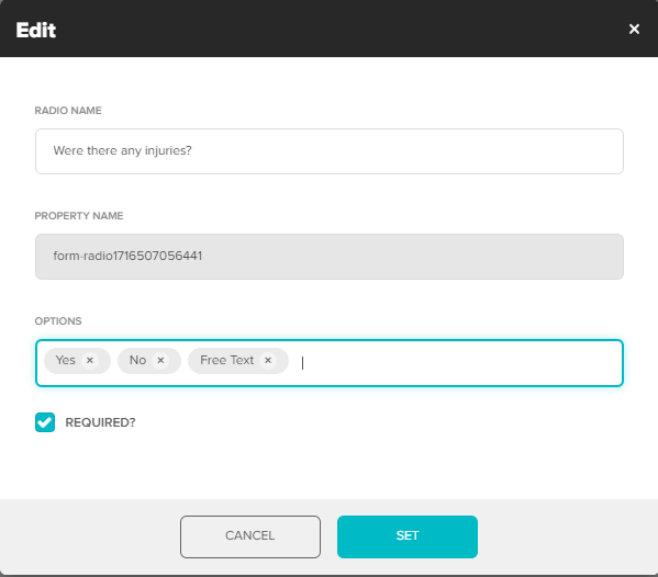 You will notice there are two “Radio” and “Checkbox” types - one with the question only, and another that includes the option for users to add photos, or create a Ticked Off work request via the form!