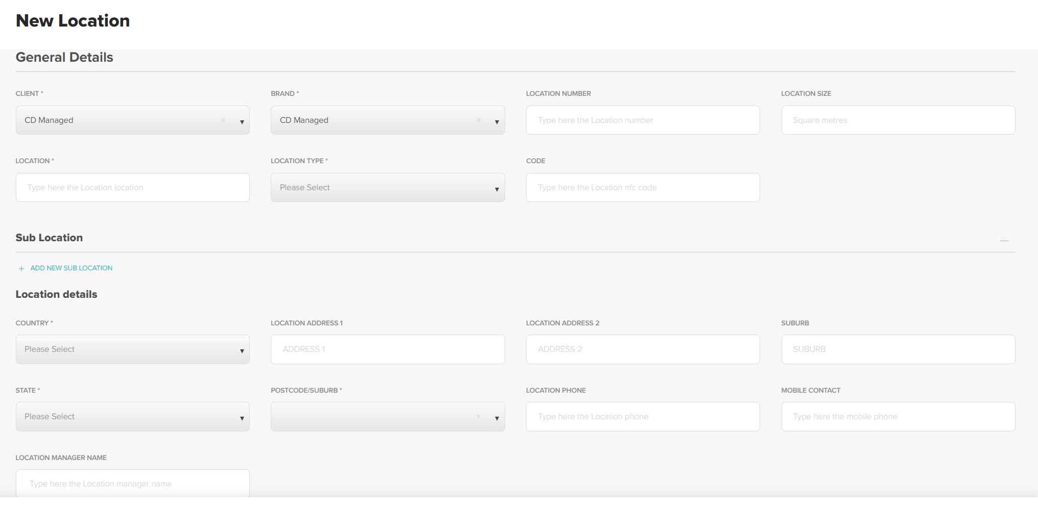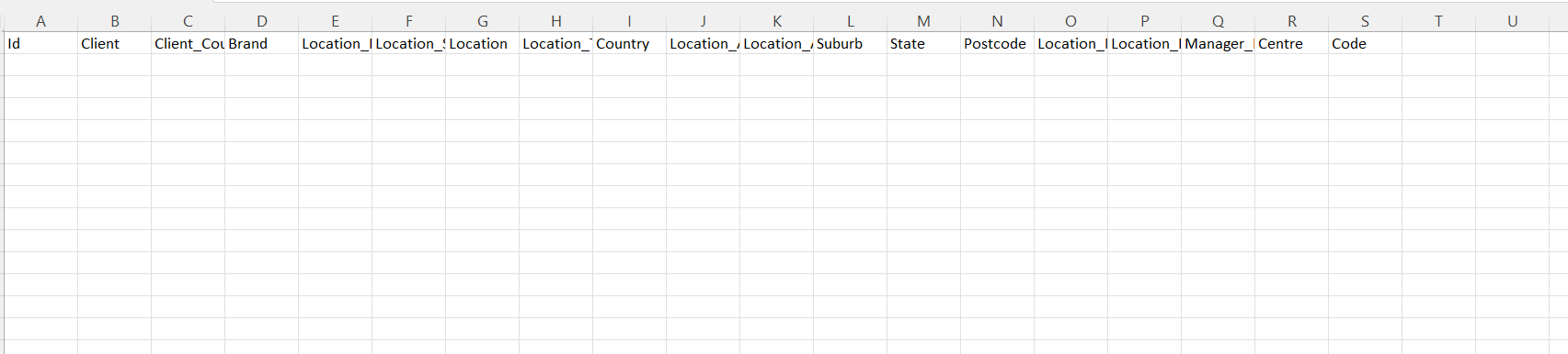 Bulk Upload is available via CSV. From the Locations list view, click Import Locations
