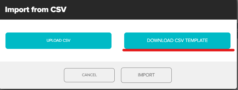 From the Import CSV popup click Upload CSV and select the saved CSV. Click Import.