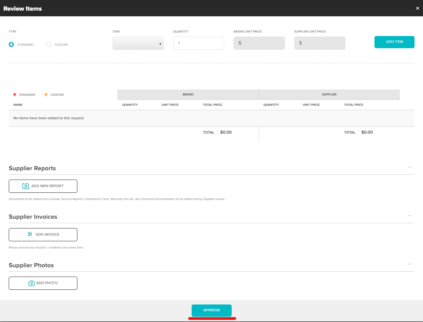 Providing the above information will allow for faster processing of invoices. Anything missing may cause delays. Click Approve to submit for review.