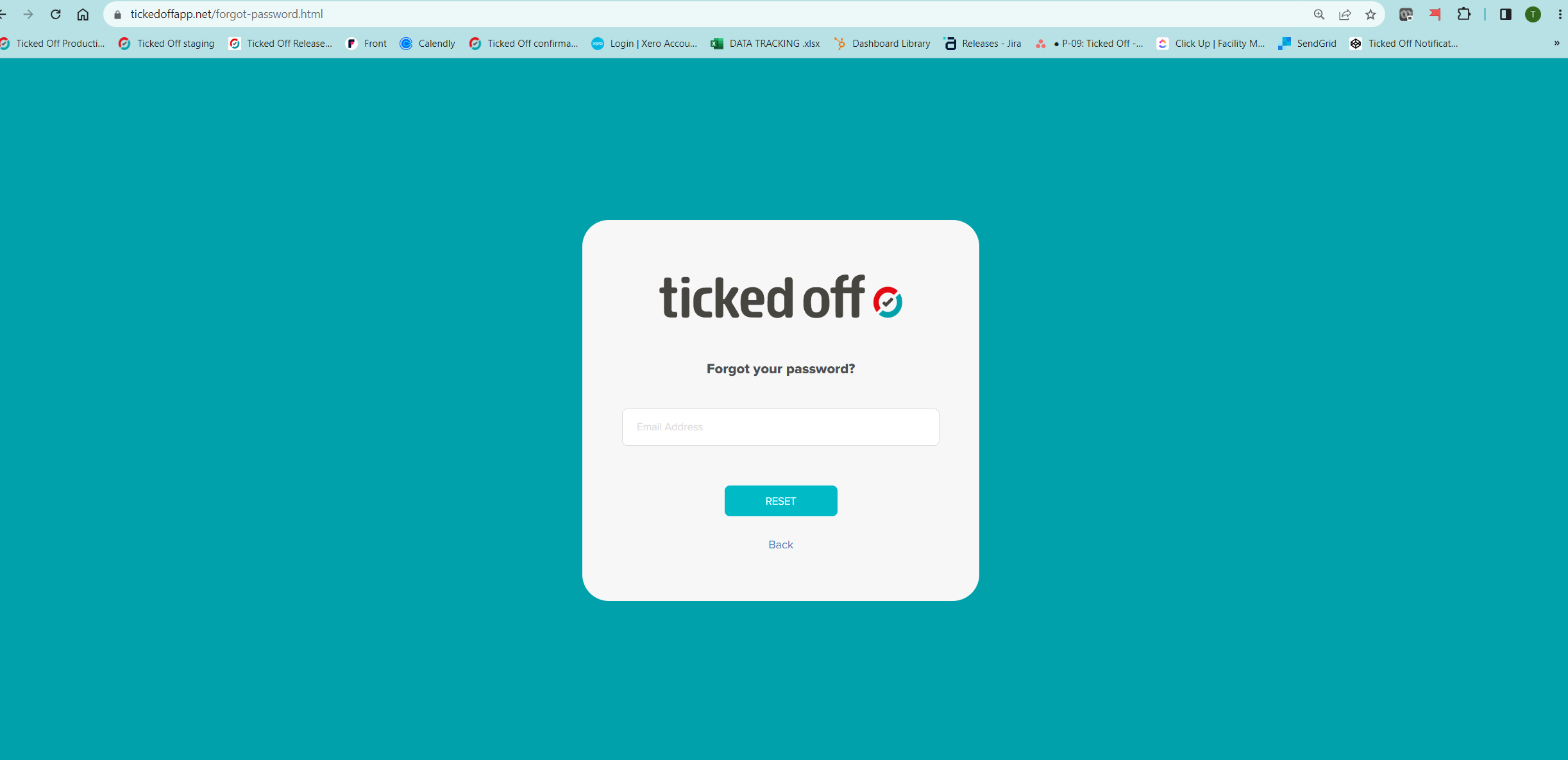 To generate a password reset, go to https://tickedoffapp.net/forgot-password.html and enter users email address.