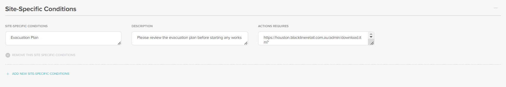 Site Specific Conditions (SSC) are known risks or factors that Suppliers / visitors need to be made aware of. Examples include