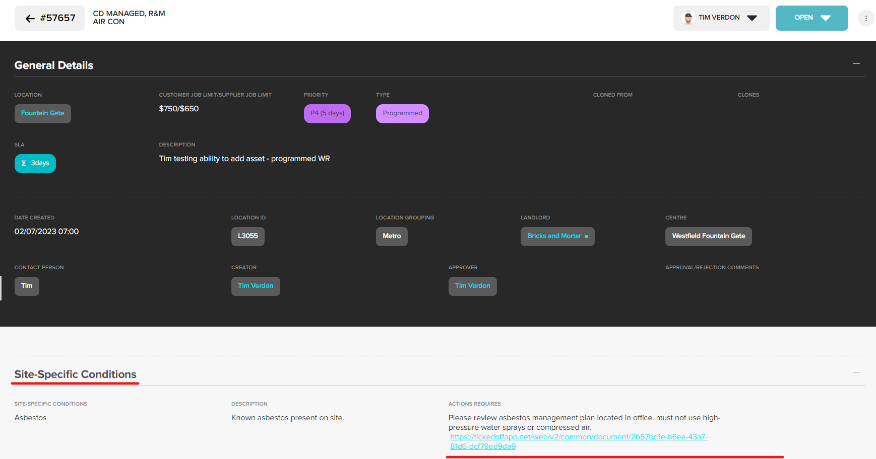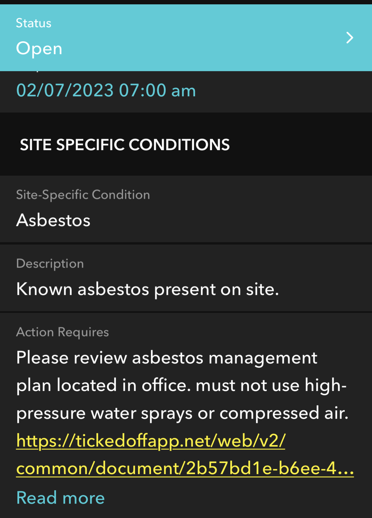 SSC's can contain a URL to take user to a document captured in your Files & Links, or an external source and are viewable in the Work Request.