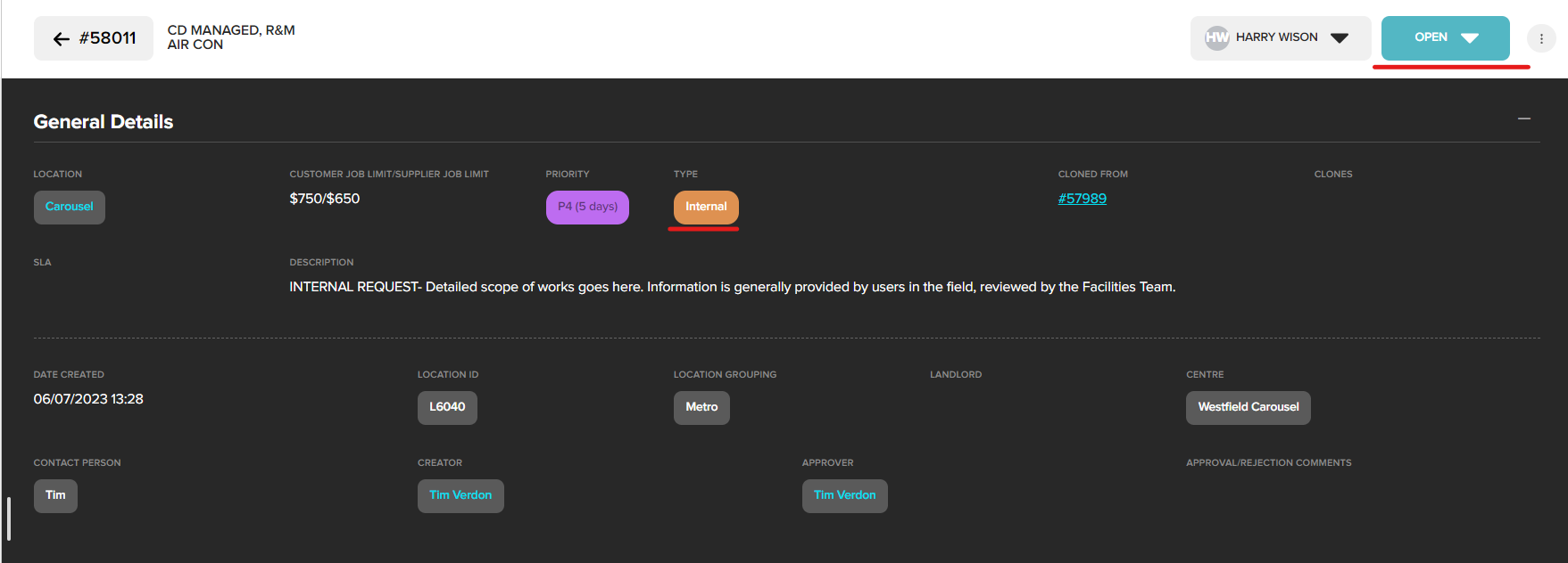 Requests can now be designated as "Internal Requests", meaning someone from within your business will complete rather than an external supplier/contractor.