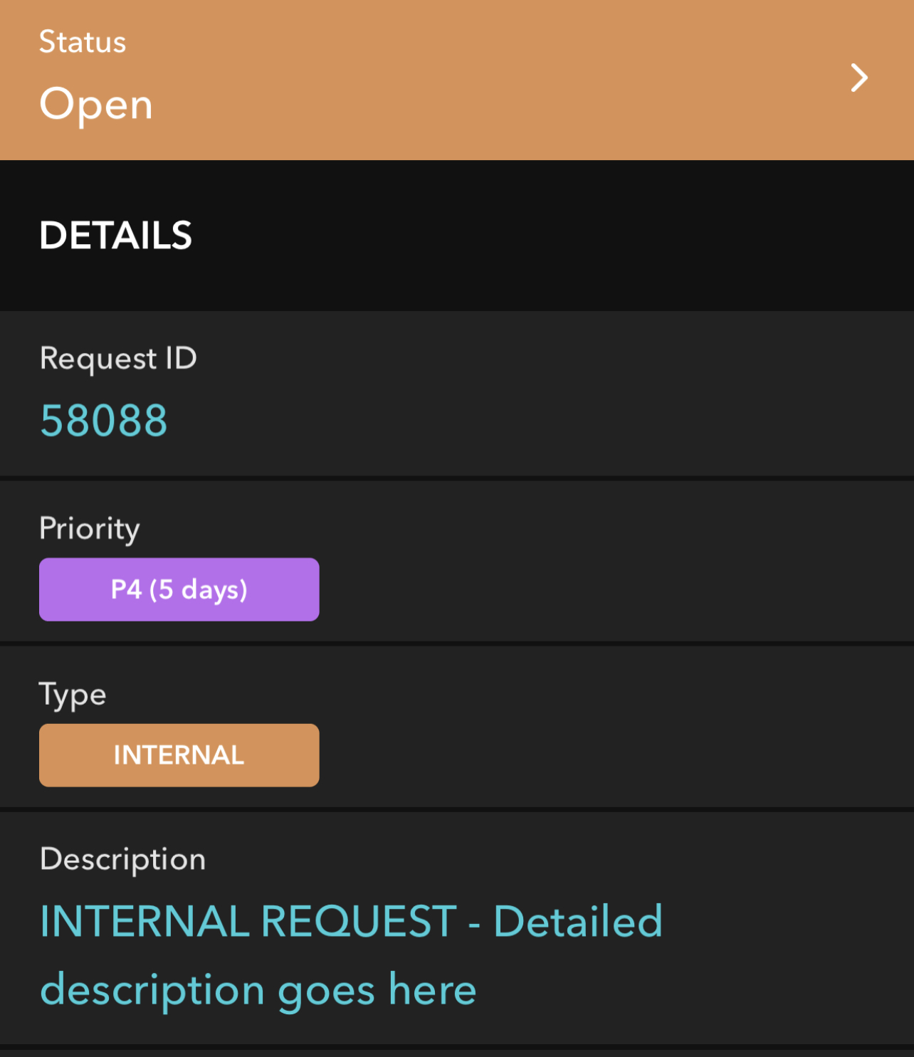 Once “Do It Ourselves” has been selected, the request type will change to Internal, and the status to OPEN.