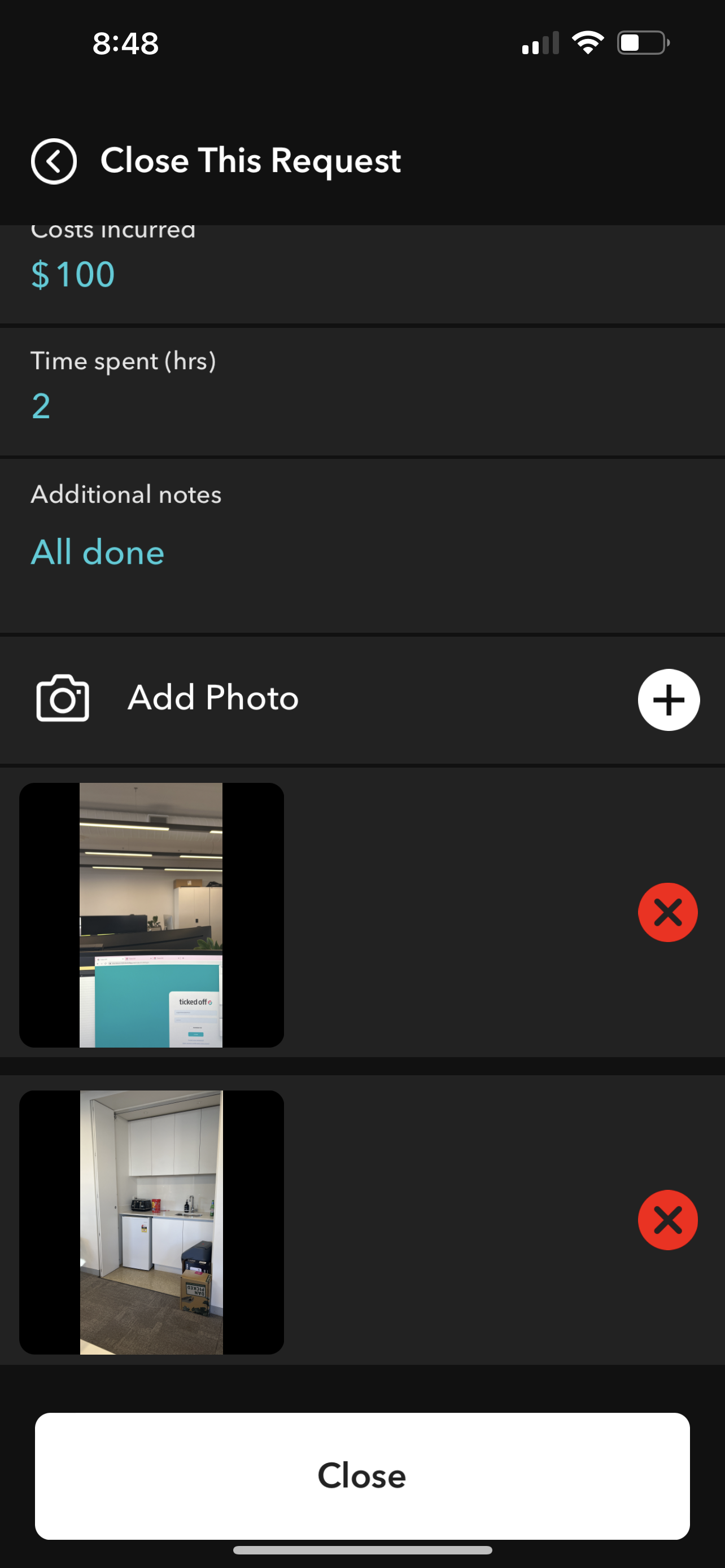 When the task is complete users can mark the request as Done via the action button.