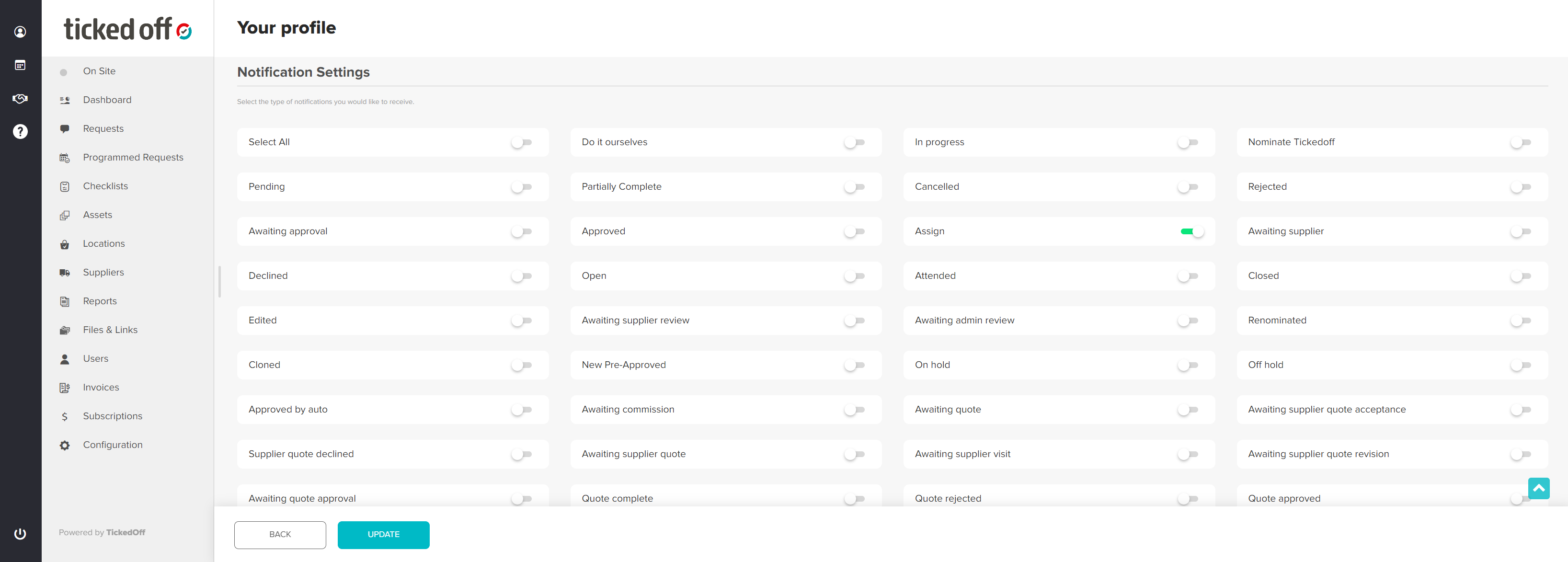 Updating and managing Ticked Off notifications is simple. Simply manage via your Profile area.