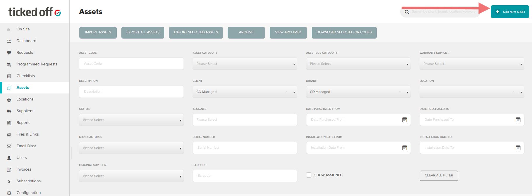 If you have multiple assets to add, you also have the option on the main Assets screen to select "Import Assets" - this will allow you to import them all at once using a CSV file.