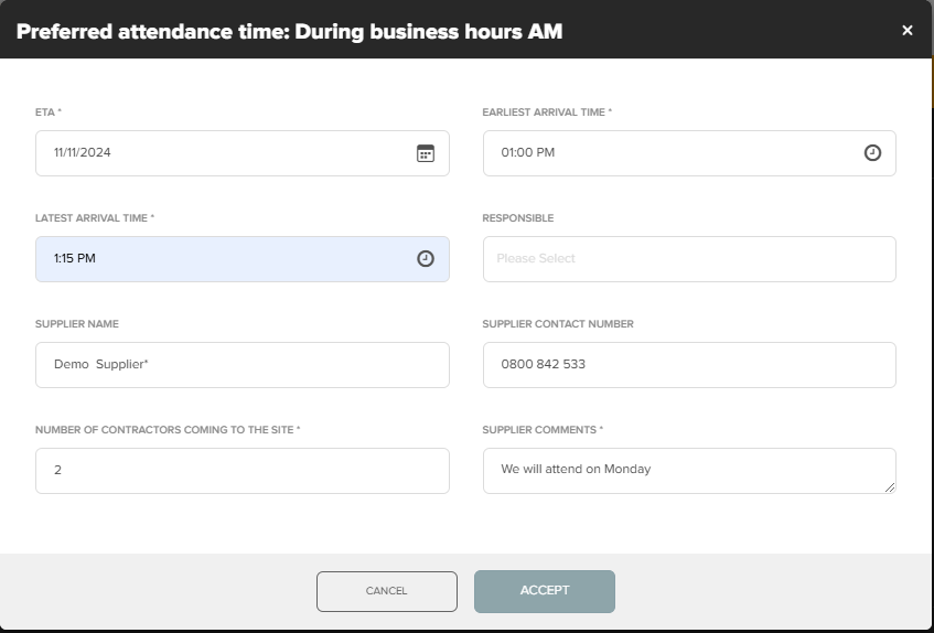 Enter your ETA, as you would when accepting a regular Work Request.
