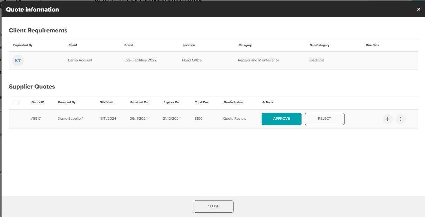 The Supplier will be notified of your decision either way, and if the Quote was Approved, they will be prompted to provide an ETA for completing the job. From here, you will receive the same notifications and updates as you would on a regular Work Request.