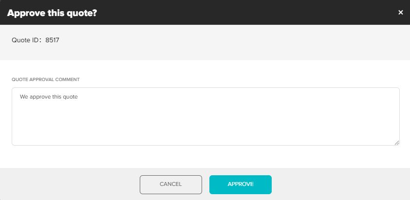 If you are happy with the quote, select "Approve". You can enter any additional comments to the Supplier at this step.